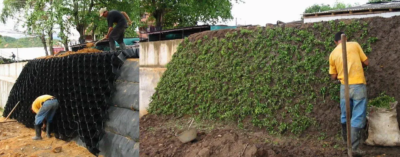 سیستم حفاظت شیب، محافظ عالی برای دامنهها در برابر فرسایش است که از طریق شبکه قابل گسترش و قوی ژئوسل طراحی میگردد. به این ترتیب شیب در برابر حرکت به سمت پایین به علت جریانهای هیدرولیکی محافظت میگردد. مصالح پرکننده بر اساس نوع پروژهها متفاوت است.- خاک: مناسب شیبها با پوشش گیاهی
