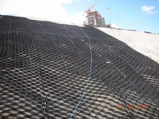 لزوم اتصال و مهارهای صحیح ژئوممبران ها از مهمترین قسمتهای عملیات نصب می باشد. به منظور تثبیت این نوع ژئوسنتتیک پس از عملیات ، شیب ابتدا بسته به ارتفاع دیواره و طول شیب در این پروژه، کانالی به عرض و عمق متوسط cm50تا cm80 در راستای بالای شیب به فاصله مشخص از تاج شیب حفر نموده و قسمت بالای این نوع ژئوسنتتیک داخل این کانال قرار می گیرد. این کانال توسط بتن پر گردید. با توجه به شرایط هر طرح می توان عملیات تقویتی همچون افزایش عمق یا تعداد ترانشه را در جهت جلوگیری از بیرون کشیدگی انجام داد. این نحوه اتصال مناسب ترین نحوه اتصال به خاک می باشد. جهت تثبیت این نوع ژئوسنتتیک بر روی دیواره های بتنی و .. میتوان از صفحه استیل و میخ مخصوص ژئوممبران استفاده نمود. بصورتیکه ابتدا محل مشخص شده را توسط دریل سوراخ نموده تثبیت نمود . برای جوش ورق از دو روش Extrusion و Fusion استفاده گردید، درکف مخزن دریاچه از روش Fusion یا جوش خودکار و از دستگاه اکسترودر جهت رفع معایب و محل هایی که دستگاه اتوماتیک قدرت مانور کافی نداشته باشد اعم از کنج ها، دور لوله ها و... استفاده گردید . دراین روش عملیات اتصال دو ورق ژئوممبران بطور اتوماتیک و با حذف خطا های انسانی انجام می شود که بهترین نوع جوش را فراهم می آورد. شکل شماره 5دستگاه جوش خودکار Fusion و دستگاه اکستروژن Extrusion رانشان می دهد . [caption id="attachment_6020" align="aligncenter" width="576"] اکسترودر جوش ژئوممبران[/caption]
