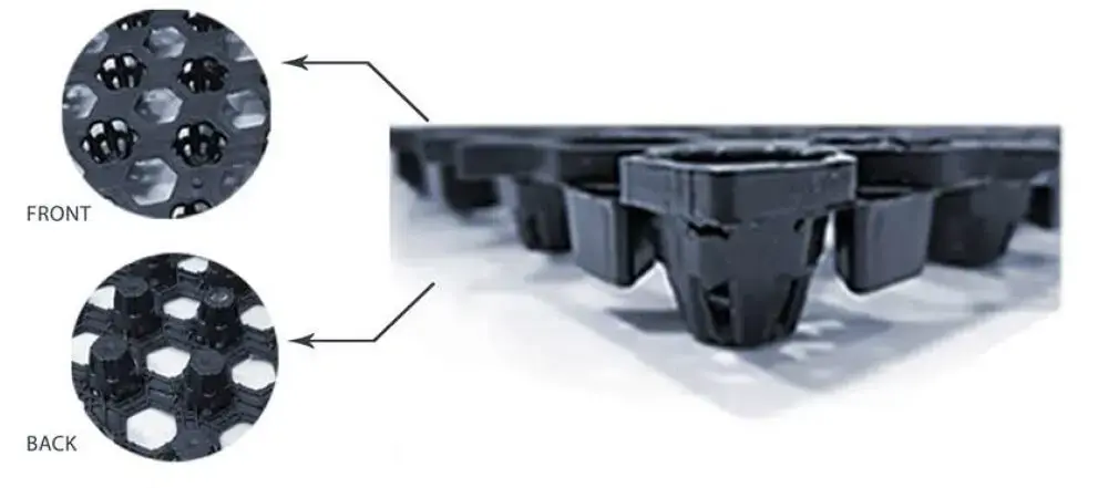 سلول زهکشی به همراه ژئوتکستایل استفاده میشود و بهعنوان غشای محافظ برای ضد آب عمل میکند و نیز تهویه صفحات بتنی را فراهم میکند که باعث کاهش تنش و ترک خوردگی ناشی از گرما میشود.